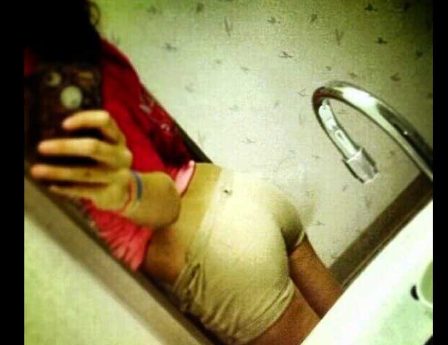 Her Twitter account shows a photo with a man ogling at her assets in a newspaper and another one shows a morphed pic of completely naked Poonam!