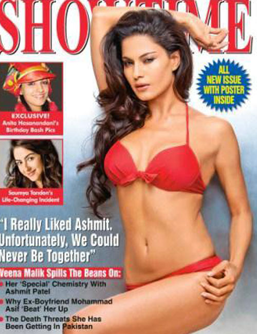 Pakistani hot babe and Big Boss celeb Veena Malik in a sexy bikini on the cover of Showtime magazine for May 2011 month issue.