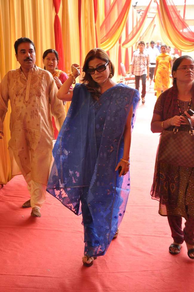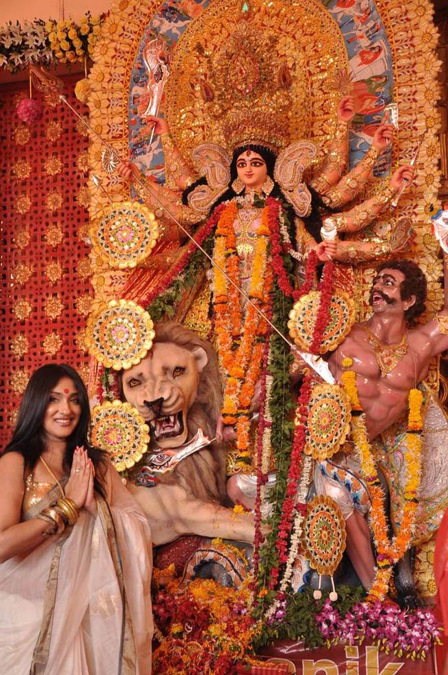 • Rituparna Sengupta offers prayer to Goddess Durga.