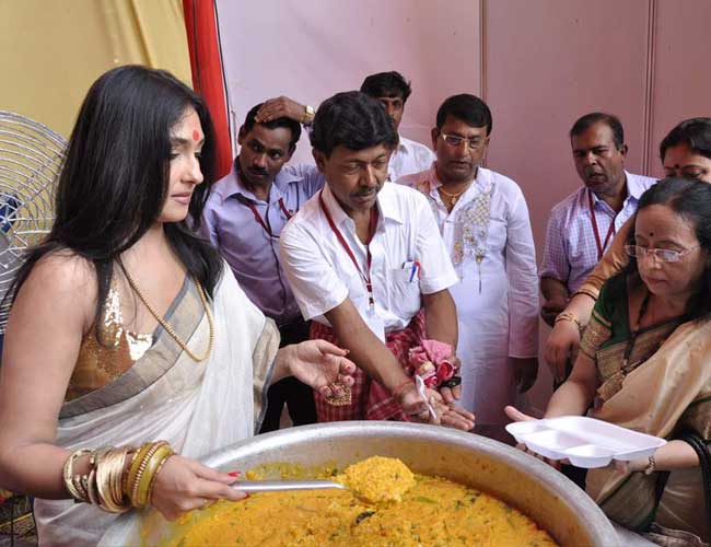 • Rituparna Sengupta serves khichdi at the Puja pandal.