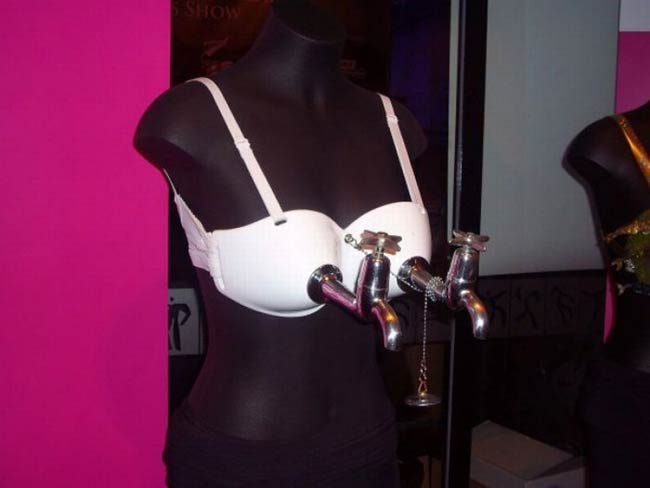 Faucet bra We wonder why anyone would need a faucet bra in the first place!