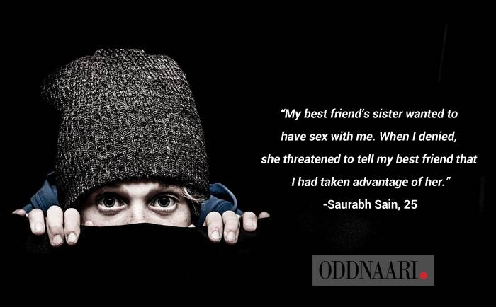 "She was my best friend's sister and was six years younger to me. When she confessed her fondness for me, I thought it was just a childish crush, but then she said she wanted to have sex with me. When I denied, she threatened to tell my best friend that I had taken advantage of her. For months I ignored my best friend due to the fear and also blocked her from everywhere. But the blackmailing resumed when I accidentally bumped into her at a friend's wedding six months later. Her presence was intimidating to say the least and it made me feel helpless," says the 25-year old Saurabh Sain, who still shudders at remembering the girl's face now.