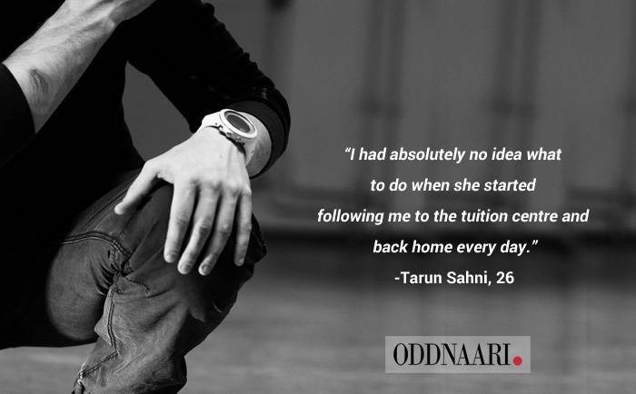 "It started with her asking for notes and went on to finding excuses to study alone with me. I had no idea what stalking meant since we were just in school. But the fact that she made certain sexual advances during those study sessions made me uncomfortable. I started ignoring, but I had absolutely no idea what to do when she started following me to the tuition centre and back home every day," recollects my friend Tarun Sahni, 26.