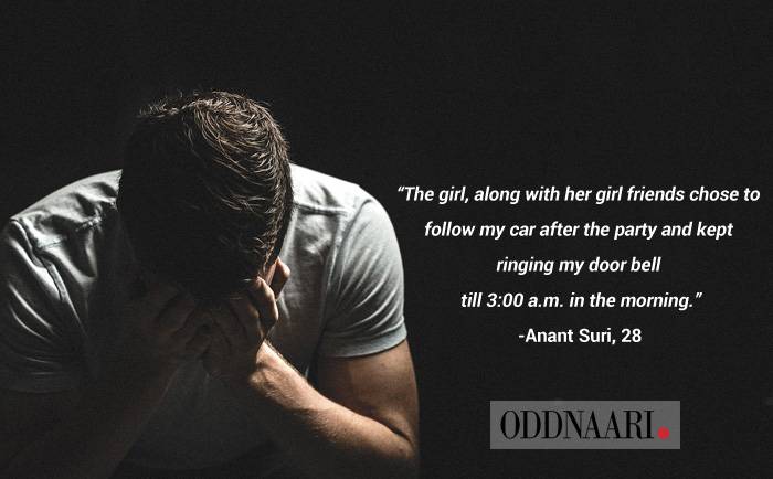 "At first I was pleasantly surprised when this girl offered to buy me a drink in the club. It was all okay till she dragged me to the dance floor and started dancing closely. I pulled my friends along since I didn't want to seem rude. To be honest, I didn't like her and was only flattered by her gesture. I thought she would understand, but she along with her girl friends chose to follow my car after the party and kept ringing my door bell till 3:00 a.m. in the morning. Trust me it really wasn't funny," he explains.