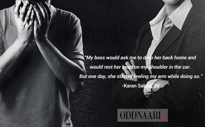 "My boss, it was. She would ask me to drop her back home and would rest her head on my shoulder in the car. But one day, she started feeling my arm while doing so. I didn't react then, however, from the next day onwards, I started making excuses and staying late in office so as to avoid giving her a lift. I guess she sensed it and started yelling at me every morning for absolutely no reason. I guess, it was her way of getting back at me, but I really was scared. I had no option but to look for other jobs within a month of joining this company," says Karan Saluja, 30.